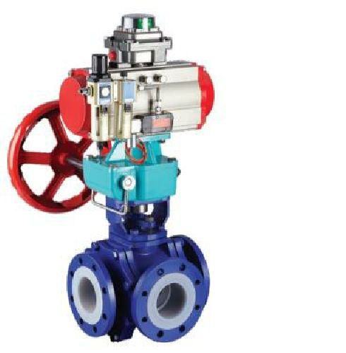 Q645F46,Q644PFA-氣動襯氟三通球閥,T型,L型,襯F46,襯PFA,耐酸、堿、鹽等腐蝕介質,通徑DN15-DN250,壓力PN1.0-1.6MPa,美標150LB。
