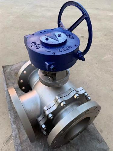 Q345F,Q344F-蝸輪不銹鋼三通球閥,分L型三通和T型三通兩種,L型三通球體有二孔,是做換向用的。T型三通球體有三孔,作用是對(duì)介質(zhì)進(jìn)行合流或分流。