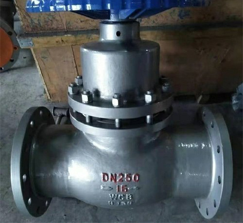 由于密封圈采用回彈性強、耐磨性高的無毒新型密封材料,所以密封可靠,經久耐用。從而提高閥門使用壽命。柱塞閘閥是由閥體、閥蓋、閥桿、柱塞、導向套、密封環、手輪等零件組成 (如圖)。當手輪旋轉時,通過閥桿帶動柱塞在導向套中上、下往復運動,使柱塞端部斜錐面與閥座面完成閥門的開啟與關閉功能。