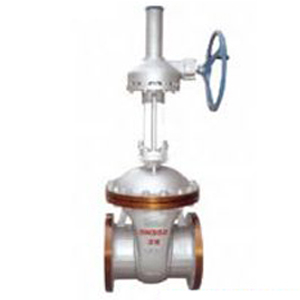 2. 閥門主要通過閥蓋上的平齒輪機構(gòu)及能夠調(diào)整的楔式雙閘板、萬向頂、夾圈等組成,借閥體內(nèi)導(dǎo)向作升降運動,互換性能好。